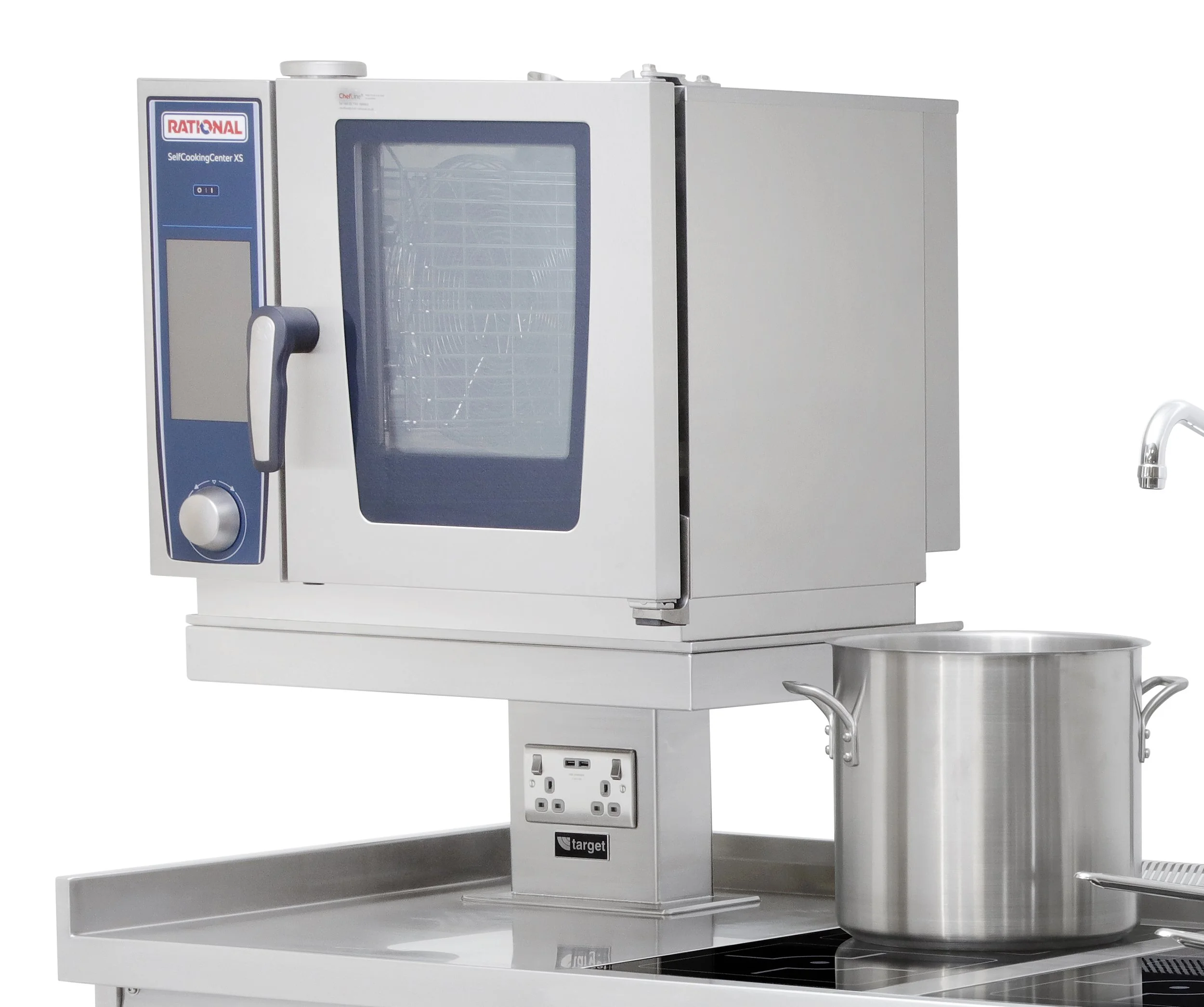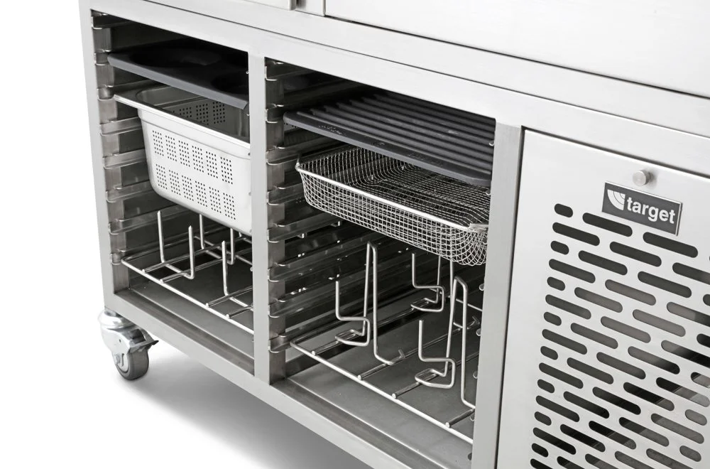 Additional appliances such as planchas, fryers, pasta boilers, refrigerated drawers and warming drawers to name a few can be built-in or added-on to your induction suite providing a seamless cookline. Add accessories; power sockets, usb power points, storage for utensils and mise en place and choose the material finish to create your ultimate bespoke Target induction range cooker.