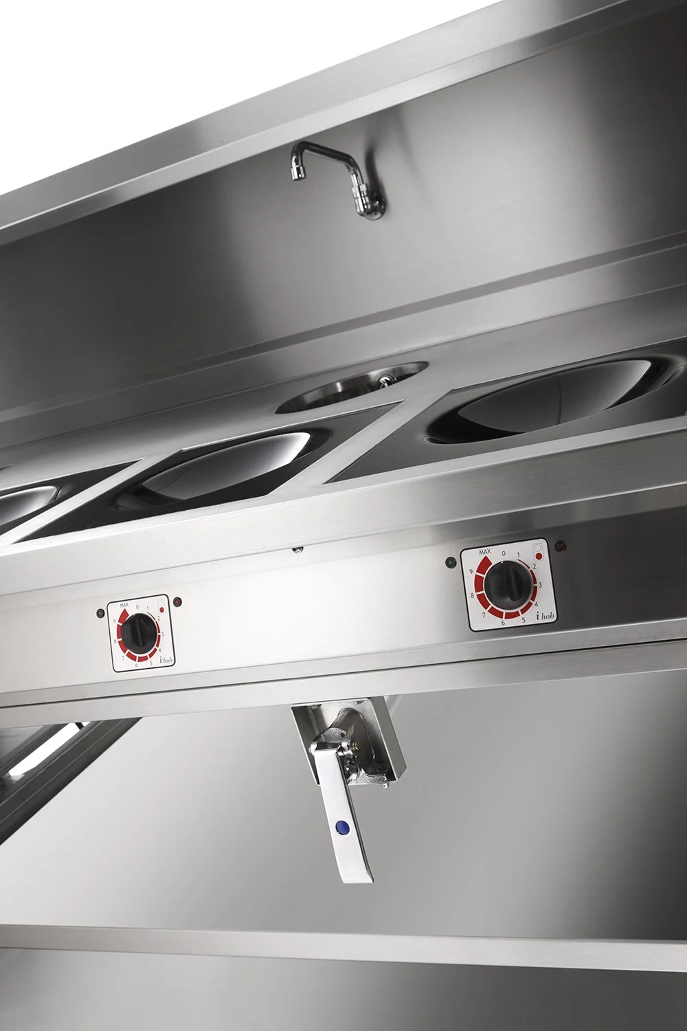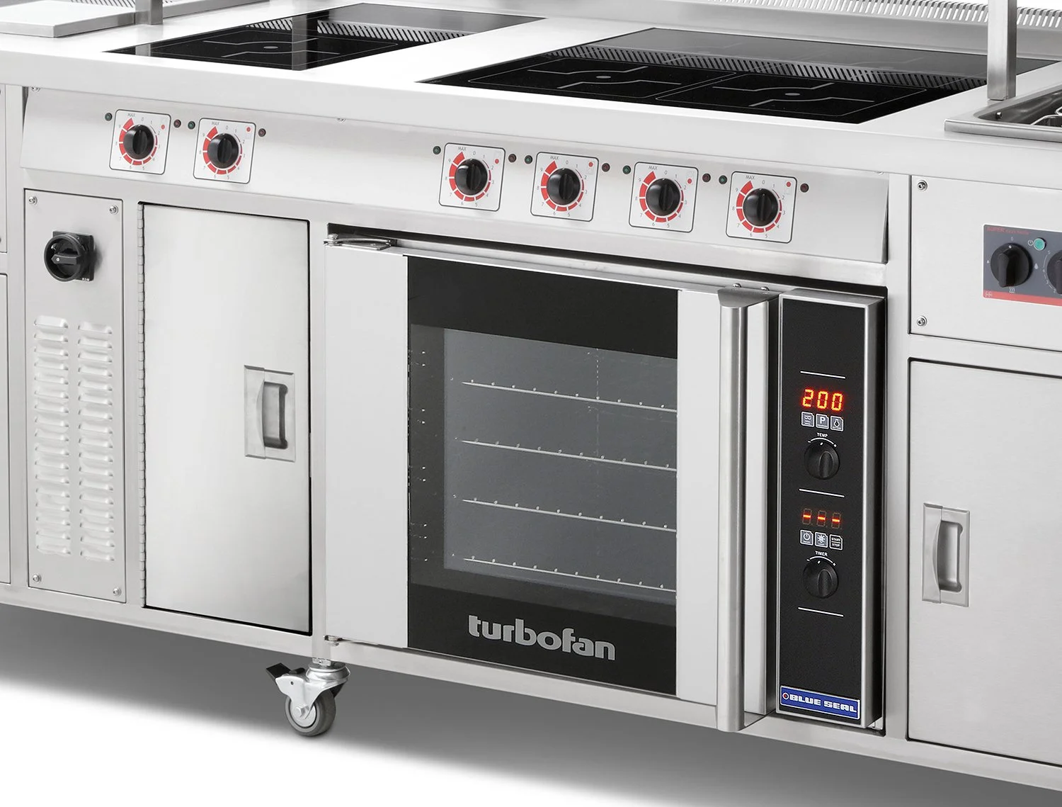 Target bespoke commercial induction ranges have a number of unique induction coil generator configuration options. These multiple generator options allows you to position appliances such as ovens, hot cupboards and refrigeration directly beneath the induction hobs so eliminating the risk of damage to the induction hob's electronic components and allowing you to fit more euqipment into the induction range's footprint.